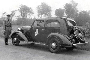 The first automobiles used for patrol are purchased. The 47 sedans costing $515 apiece are bought to replace most of the 46 Harley Davidson motorcycles and 25 sidecars. Several motorcycles remain in use. The patrol vehicles are black and highway safety vehicles are white.